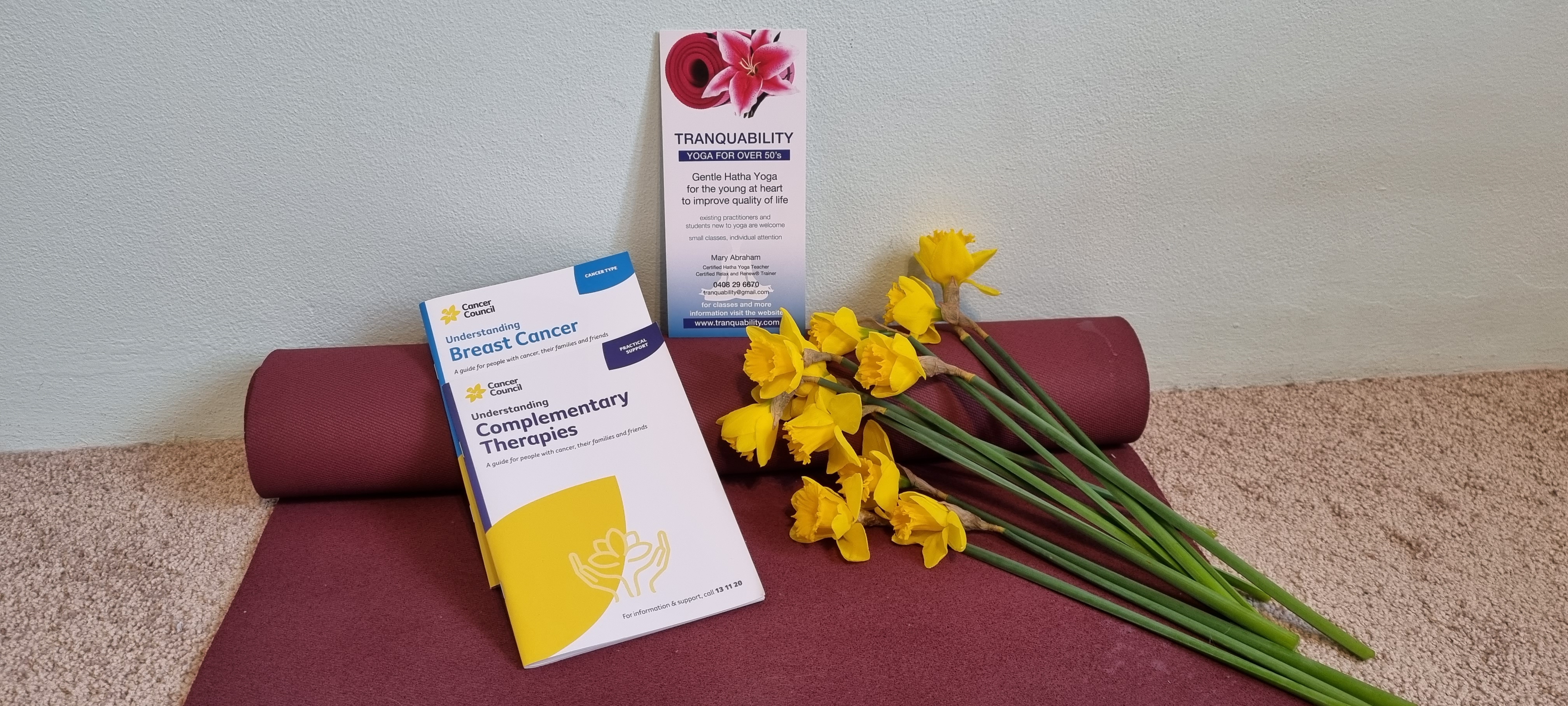 Daffodils on mat with CC booklets