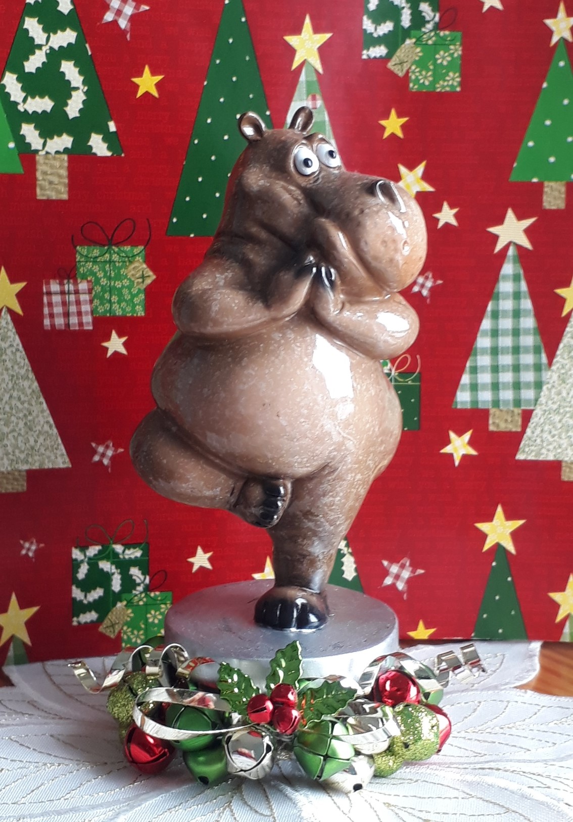 Hippo Christmas red background~cropped